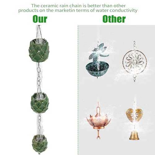 【Perfect Drain Alternative】 This set of ceramic rain chain is better than other products on the market in terms of water conductivity, with exquisite appearance and unique material, it is a really perfect alternative to gutters.