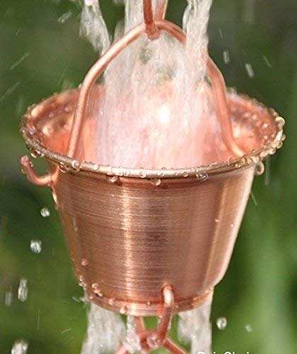 This rain chain cup design expresses tranquility and simplicity (“Shizuka Copper Cups” means ‘quiet’ in Japanese). Made of pure copper, the cups will acquire a beautiful patina over time. You’ll enjoy the soothing sounds of water flowing through the cups every time it rains. Comes with a gutter installation attachment piece making installation a breeze.