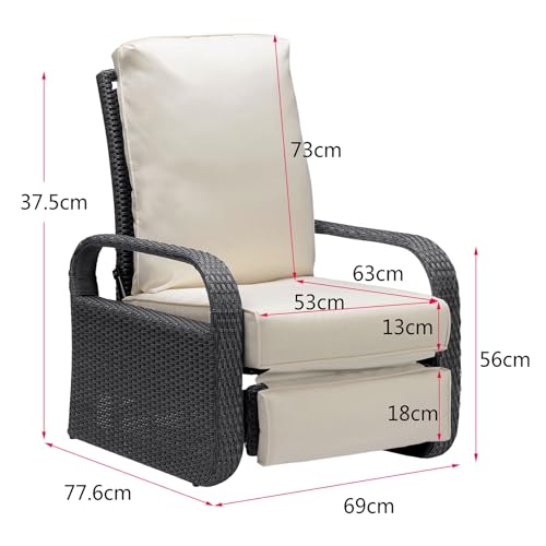 【3 Position Height Adjustable】Our garden recliner chairs motion furniture chair offers three height positions for customers to adjust. You can gently push the armchair back to 90, 100, or 135 degrees according to your preference. The footrest will come up with the backrest when you recline the chair, making it easy to operate and adjust manually.