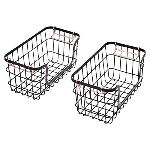 Amazon Basics Stackable Metal Storage Baskets for Kitchen or Bathroom, Rectangular, Black