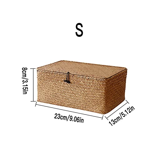 Esoes Wicker Storage Basket Woven Rattan Storage Box With Lids Seagrass Laundry Baskets Makeup Organizer For Bathroom, Living Room, Kitchen (S)