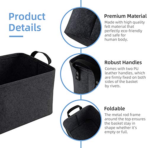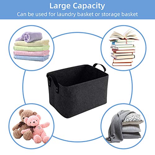 LITLANDSTAR Felt Storage Basket, Foldable Felt Basket Storage Box Open Storage Bin Laundry Hamper with Handles Shelf Basket Storage Basket Bin Organizer for Clothing, Magazine, Toys(Black)