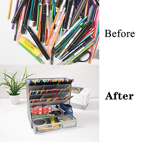 Vikmyer Mesh Desk Organizer Multi-Functional Desktop Stationery Pen Holder Box for Home Office School Supply Storage Rack